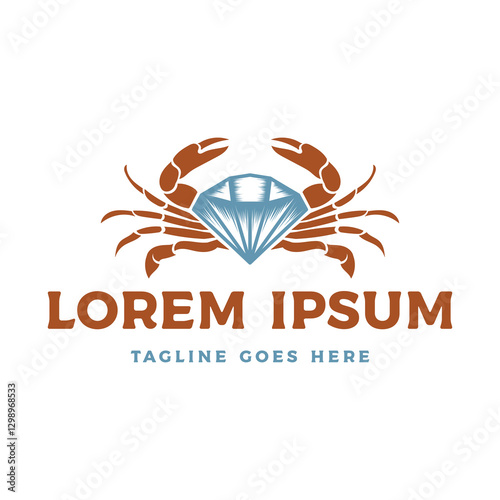 © AFstudio87, Obraz premium Vintage Retro Crab with Diamond Stone Icon Illustration Logo Design
