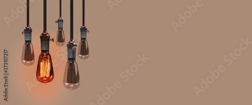 © Laurence, Naklejka premium vintage retro edison hängelampe oder seillampe als horizontaler banner hintergrund