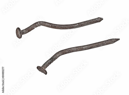 © RedDaxLuma, Obraz premium vintage rusty nails over white