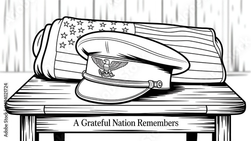 © Umair, Naklejka premium Vintage school design illustration of old-fashioned desk and board with a retro frame sketch MEMORIAL DAY website banner header template created with generative ai