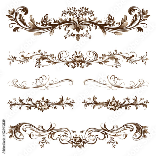 Fototapeta premium Vintage Scrollwork Borders and Floral Flourishes