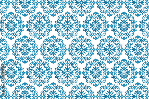 © MuhammadUmar, Fototapeta premium vintage seamless blue ornamental pattern with botanical accents for premium pillow covers and soft bedsheets
