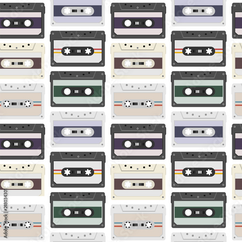 Obraz premium Vintage seamless pattern with analogue music cassettes. 80s Loopable...