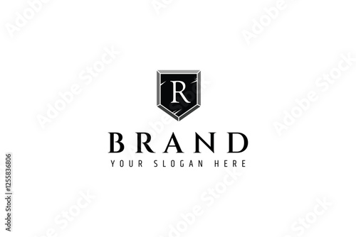 © FendyTerisno, Fototapeta premium vintage shield emblem frame logo with letter R flat design