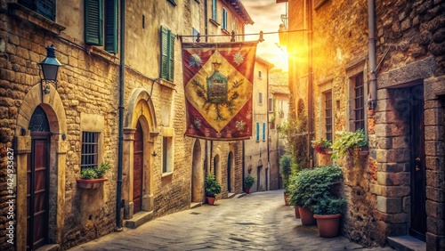 © Sirinporn, Fototapeta premium Vintage Siena Cityscape Banner, Tuscan Italy, Retro Travel Poster