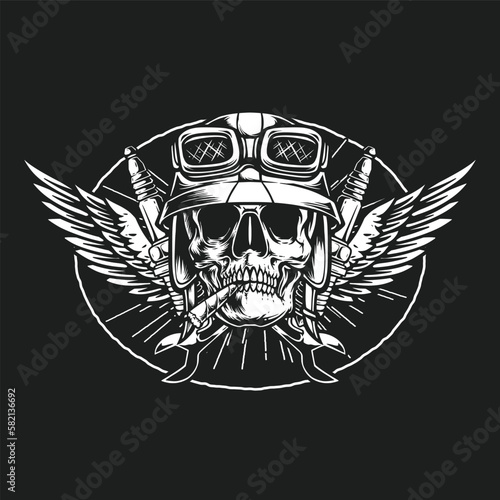 © InksyndromeArtwork, Obraz premium vintage skull biker with wings logo