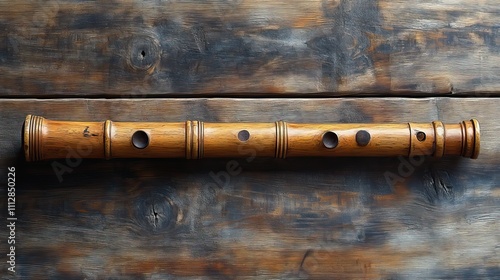 © Thoa, Fototapeta premium vintage sopilka a flat style wooden pipe idea for a miniature woodwind instrument cylindrical tube with flared end music poster design in format