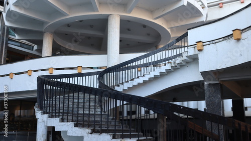 © Mikalai Drazdou, Obraz premium vintage staircase with railing heading on roof