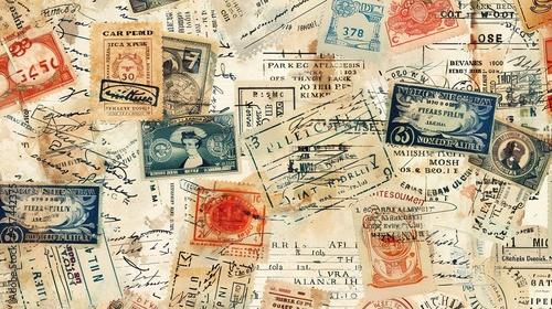 © pixelwallpaper, Fototapeta premium Vintage stamp pattern wallpaper