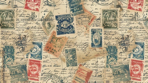 © pixelwallpaper, Fototapeta premium Vintage stamp pattern wallpaper