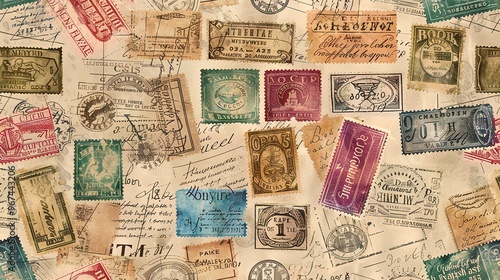 © pixelwallpaper, Fototapeta premium Vintage stamp pattern wallpaper
