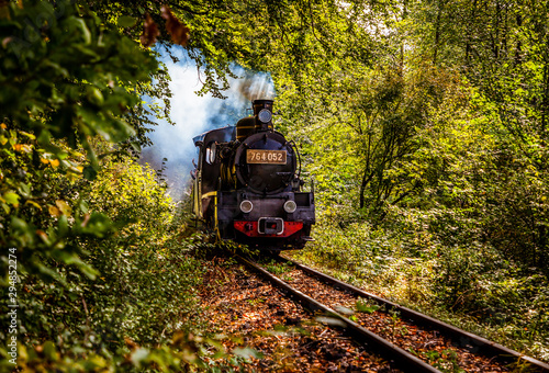 © Melinda Nagy, Fototapeta premium vintage stary parowóz w lesie - powolna podróż