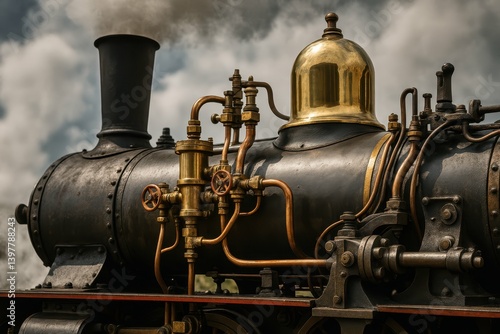 © Kitta Studio, Naklejka premium Vintage Steam Engine Close-Up with Intricate Brass Details