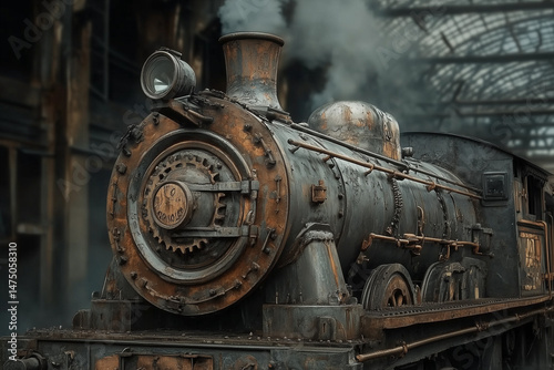 Naklejka premium Vintage Steam Engine In An Industrial Setting