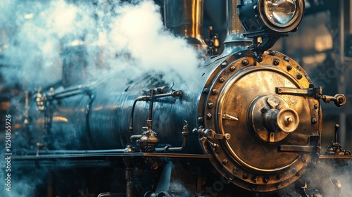 © Kitta Studio, Fototapeta premium Vintage Steam Engine with Beautiful Brass Details and Billowing Smoke