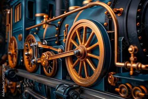 Fototapeta premium Vintage Steam Engine with Large Detailed Wheels and High Fidelity