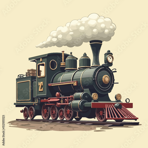 © hattaarshavin, Fototapeta premium Vintage Steam Locomotive Illustration A Nostalgic Journey Through Time