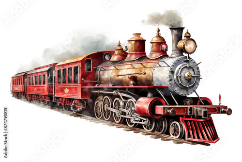 © Ameer, Obraz premium Vintage steam locomotive illustration on transparent background, PNG style, perfect for digital art and design projects