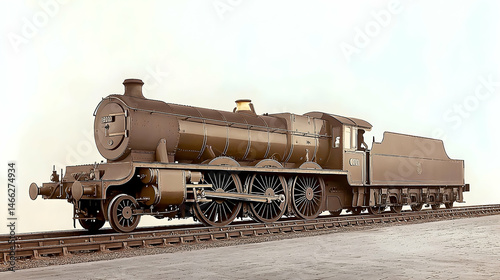 Naklejka premium Vintage Steam Locomotive On Railroad Tracks