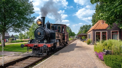 © nakama, Obraz premium Vintage Steam Train at a Quaint Station