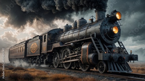 Naklejka premium Vintage Steam Train Chugging Through the Clouds