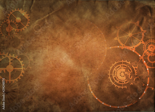 © magerram, Naklejka premium vintage steampunk old background, paper canvas frame, cogs, gears retro wallpaper