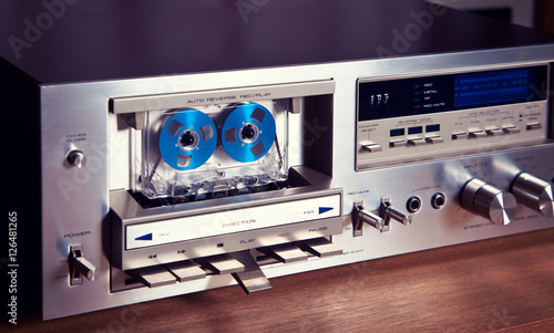 © Viktorus, Fototapeta premium Vintage stereo cassette tape deck player recorder front panel an
