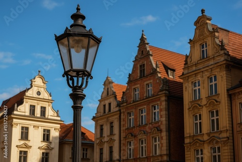 © TheWaterMeloonProjec, Fototapeta premium Vintage streetlamp against old architectural facades