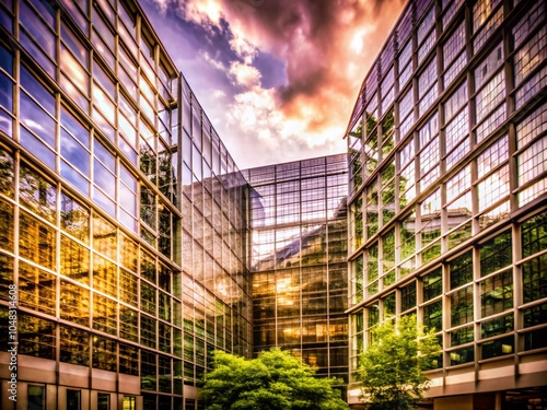 © prapatsorn, Fototapeta premium Vintage Style Architectural Wireframe of Modern Building Complex with Glass Facades and Levels