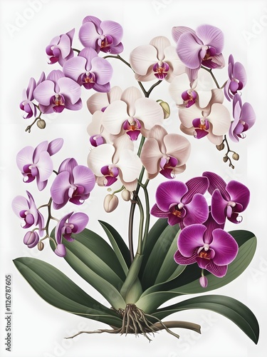 © Emmyn2222, Fototapeta premium vintage style botanical exquisite assortment of orchid flowers. illustration
