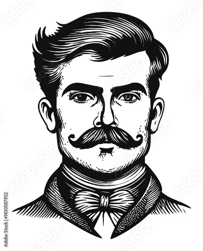Fototapeta premium Vintage Style Engraving of a Man with Mustache and Bow Tie
