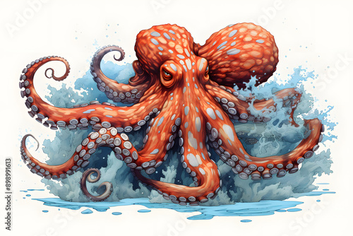 Naklejka premium vintage style illustrated octopus, octopus illustration vintage vibe