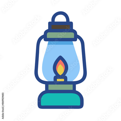 © Sharuzzaman, Fototapeta premium Vintage Style Lantern Icon with Glowing Flame on Black Background, Flat Design