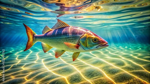 Naklejka premium Vintage Style Photography of a Fish Gliding Through Crystal Clear Water in a...
