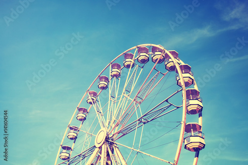 Fototapeta premium Vintage stylized picture of a Ferris wheel against the blue sky.