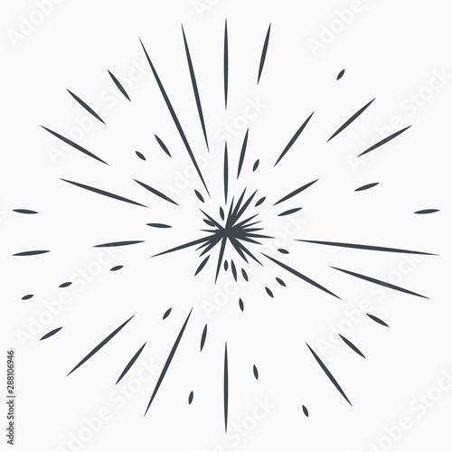 Obraz premium Vintage Sunburst Explosion Handdrawn Design Element Fireworks Black Rays