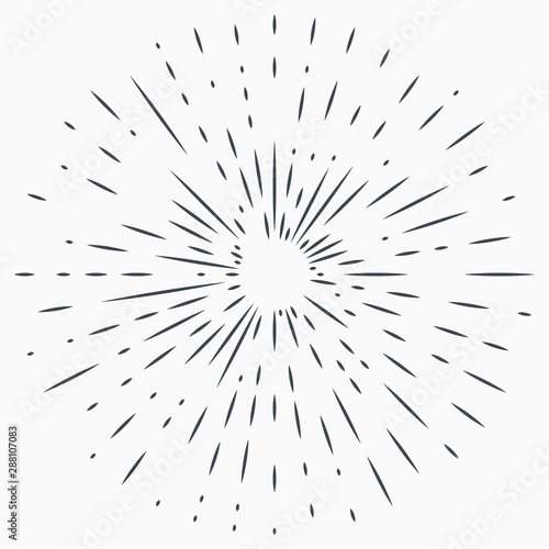 Obraz premium Vintage Sunburst Explosion Handdrawn Design Element Fireworks Black Rays
