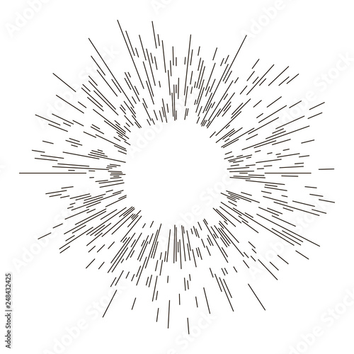 © vda_82, Naklejka premium Vintage sunburst explosion lines.Fireworks black rays design element. Linear drawing vector. Linear radial burst
