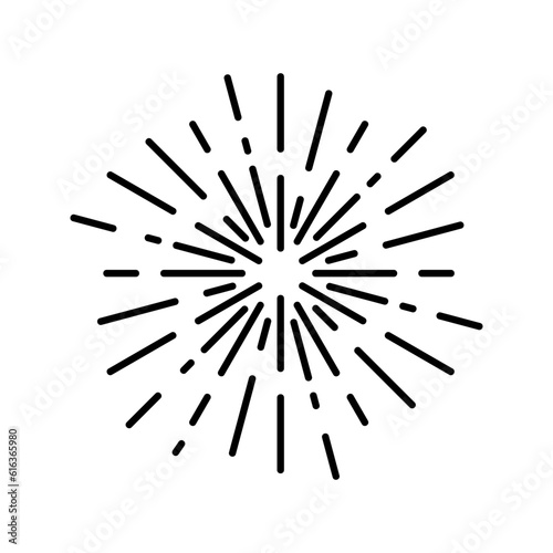 Fototapeta premium Vintage Sunburst icon vector. Explosion Hand drawn illustration sign. Elements Fireworks. Black Rays.