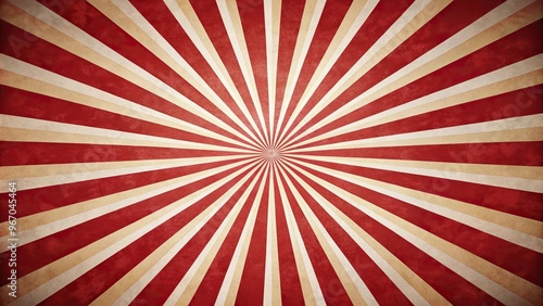 © methinee, Fototapeta premium Vintage sunburst red and white retro background close-up