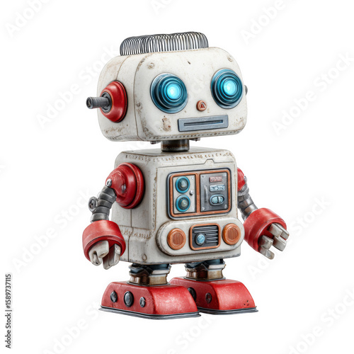 © Ilmi, Fototapeta premium Vintage Toy Robot with Retro Design and Bright Eyes Isolated on White Background for Creative Projects