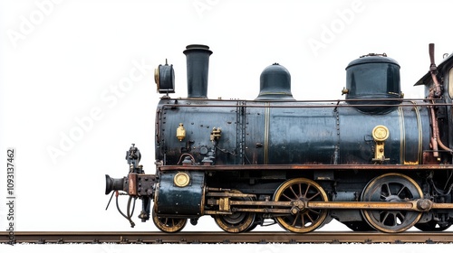 Naklejka premium Vintage Train Engine in Motion on Railway Track