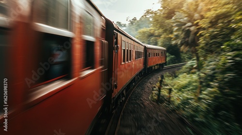 © Braga, Obraz premium Vintage train through lush forest