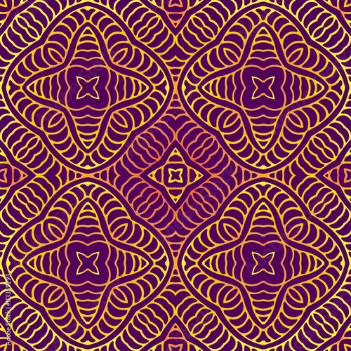 © cornejavo, Fototapeta premium Vintage tribal ethnic backdrop, seamless texture. Boho fashion style background. Hand drawn vector illustration
