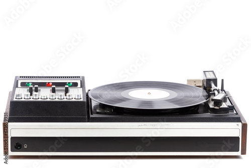 Fototapeta premium Vintage turntable record player with black vinyl