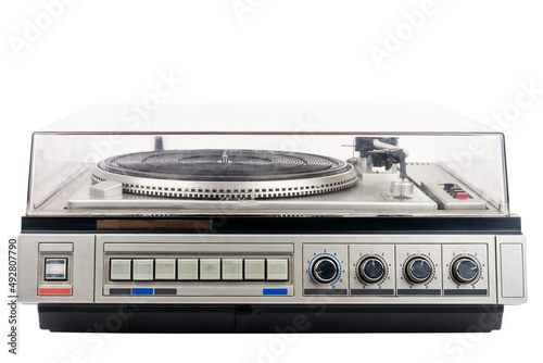 © Taigi, Fototapeta premium Vintage turntable record player with dust cover