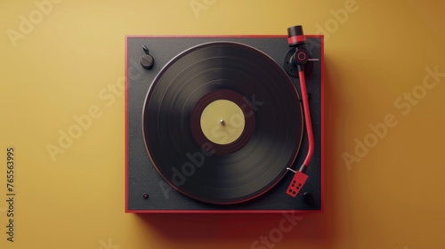 © AlfaSmart, Obraz premium Vintage turntable with a rotating vinyl record