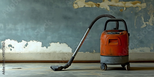 © Vasiliy, Fototapeta premium Vintage vacuum cleaner in dilapidated room highlighting need for thorough cleaning and renovation