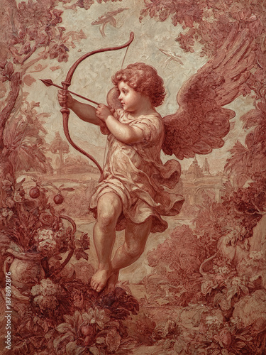 © TAlex, Fototapeta premium Vintage Valentines Day Cupid Angel with Bow Print