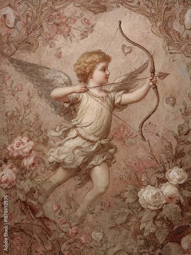 © TAlex, Fototapeta premium Vintage Valentines Day Cupid Angel with Bow Print